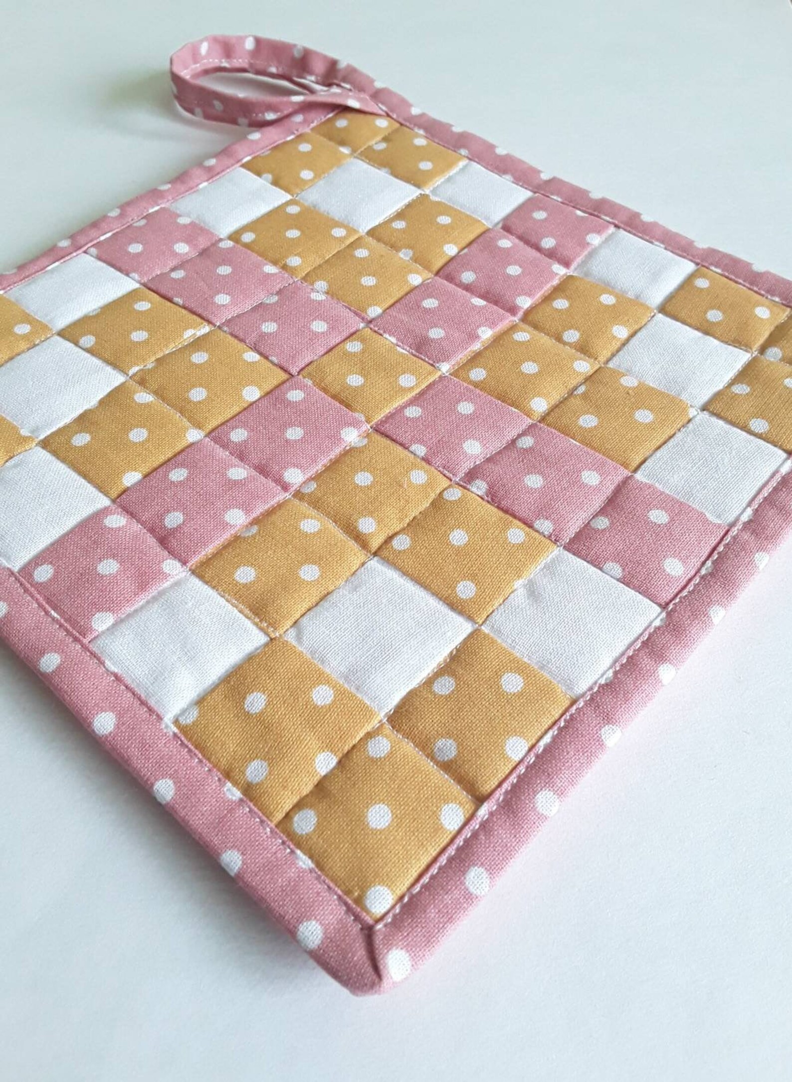 Quilted Pot Holders with Hanging Loop, Colorful Pot Holders Set of 2, Quilted Kitchen Decor by Pot Holders Quilted learn how to make a quilted potholder with this step by step tutorial. my free quilted potholder sewing pattern makes both square and round potholders so you can choose whichever shape you like. Bias tape for finishing (store bought or. check out our quilted potholders selection for the very best in unique or custom, handmade pieces from. Pot Holders Quilted.